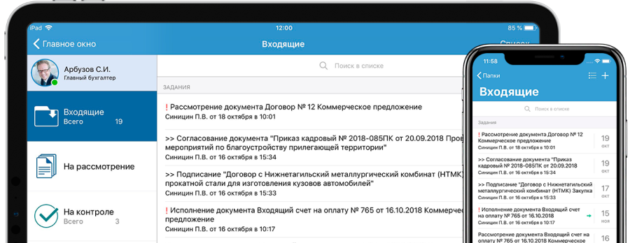 Рабочие приложения с привычными функциями информационной системы – это гарантия оперативности в решении деловых вопросов и доступ к корпоративной информации 24/7. Directum предлагает мобильные приложения для разных категорий сотрудников – руководителям, обычным пользователям системы и сотрудникам без личного ПК.
