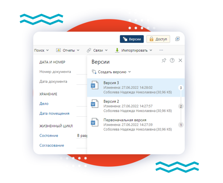 - Каждое глобальное изменение документа в Directum RX можно сохранять новой версией, не создавая нового объекта в системе – все пользователи сразу увидят и смогут работать с актуальной информацией;
