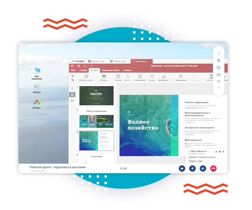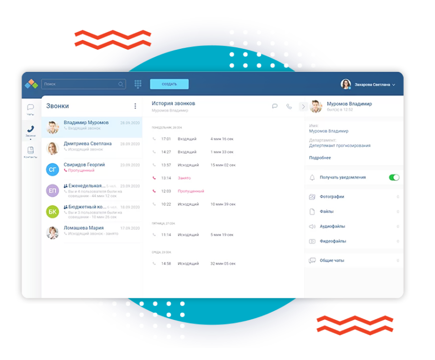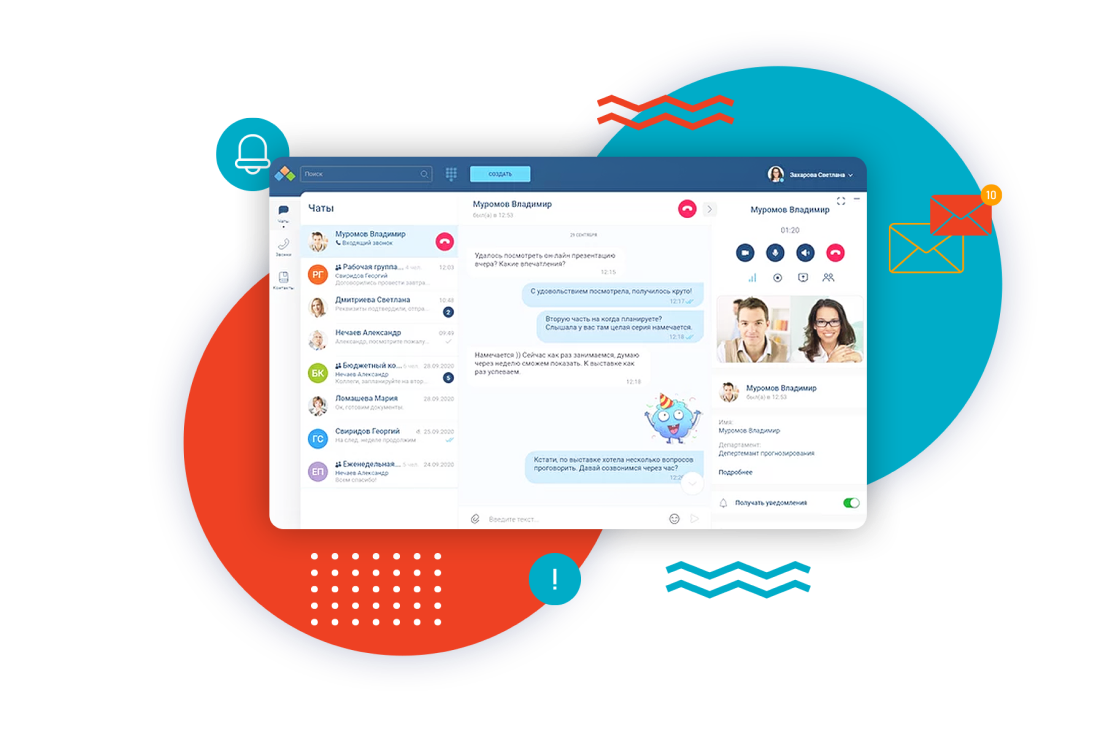 Все коммуникации в едином приложении – корпоративный мессенджер, видео- и аудиоконференции.