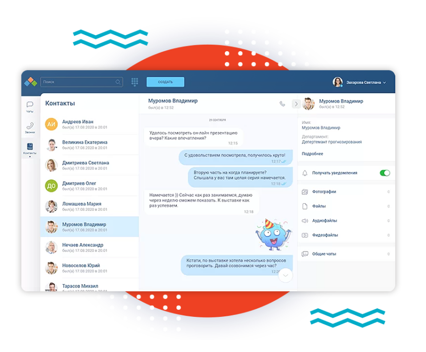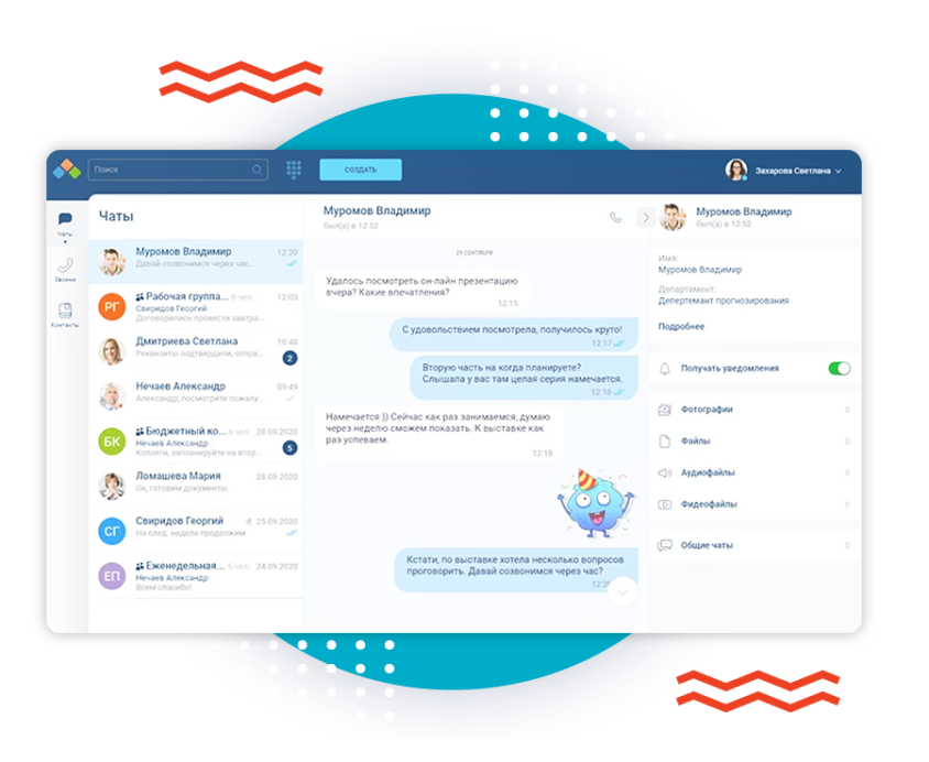 - Деловая переписка и быстрая отправка файлов