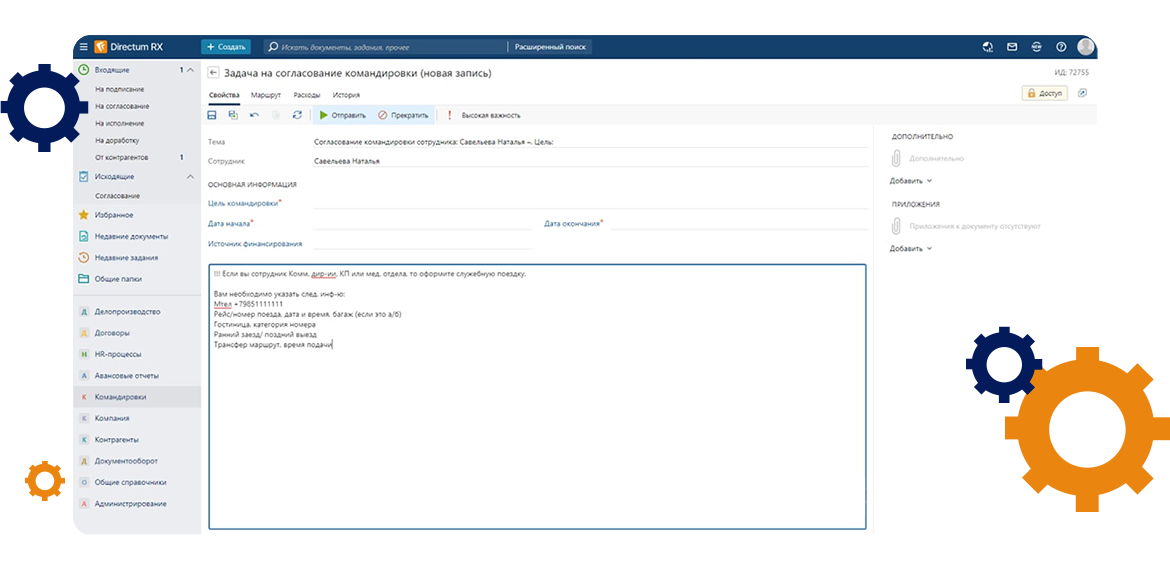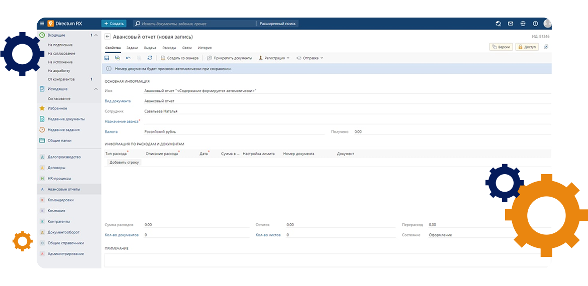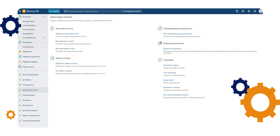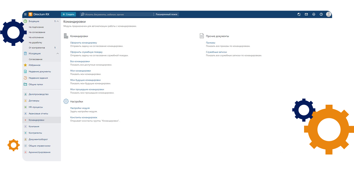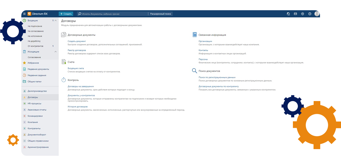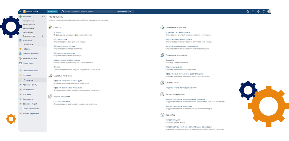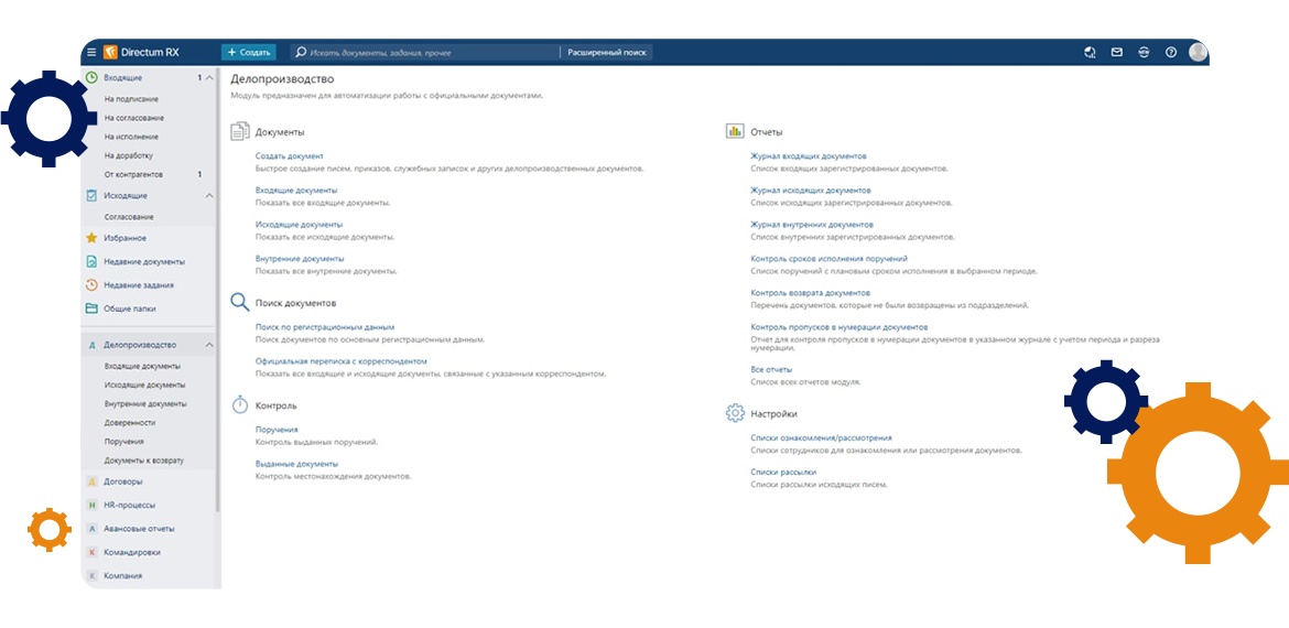 - Внедрение 2 модулей и 2 решений на платформе Directum RX: Договоры, Делопроизводство, HR-процессы, Командировки и авансовые отчеты.