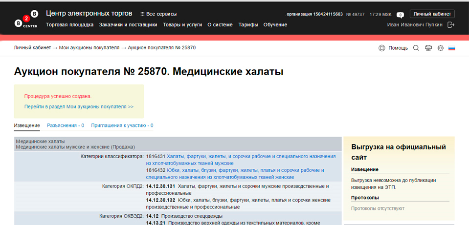 Когда все необходимые поля заполнены, остается лишь нажать кнопку «Опубликовать». Всю остальную работу по публикации система сделает сама. В случае некорректного заполнения информации или возникновения каких-либо сложностей с публикацией закупки, система пришлет оповещение с необходимой информацией.
