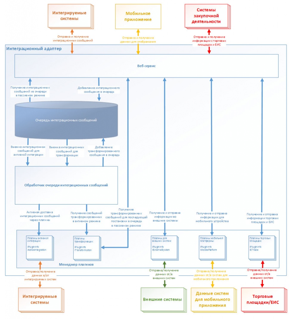 На рисунке ниже представлена архитектура интеграционного адаптера, составляющими частями которого являются: