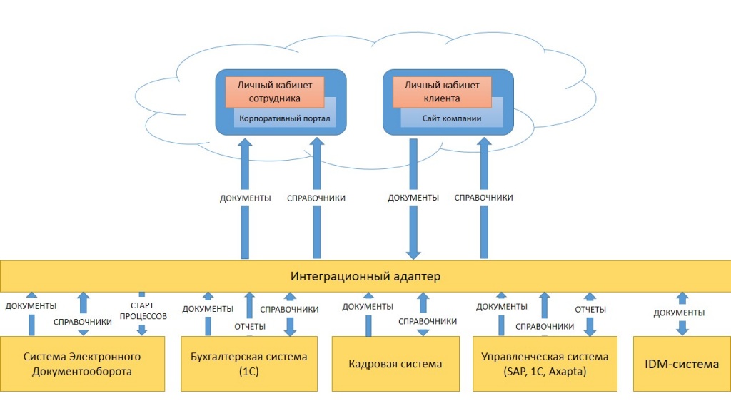 Корпоративный ландшафт после внедрения интеграционного адаптера выглядит следующим образом: