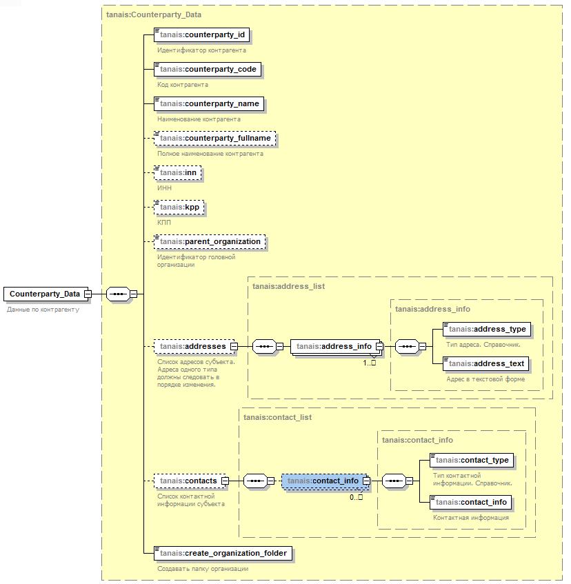 Однако, если вы не хотите использовать трансформационные плагины, тогда через Интеграционный адаптер все части КИС общаются между собой посредством XML-файлов. Так, например, тот же новый контрагент, если он создается в управленческой системе, то данные о нём выгружаются в адаптер и забираются оттуда всеми системами, которым нужна информация о контрагенте (СЭД, бухгалтерия, сайт). Пример формата данных для обмена записями о контрагентах выглядит следующим образом: